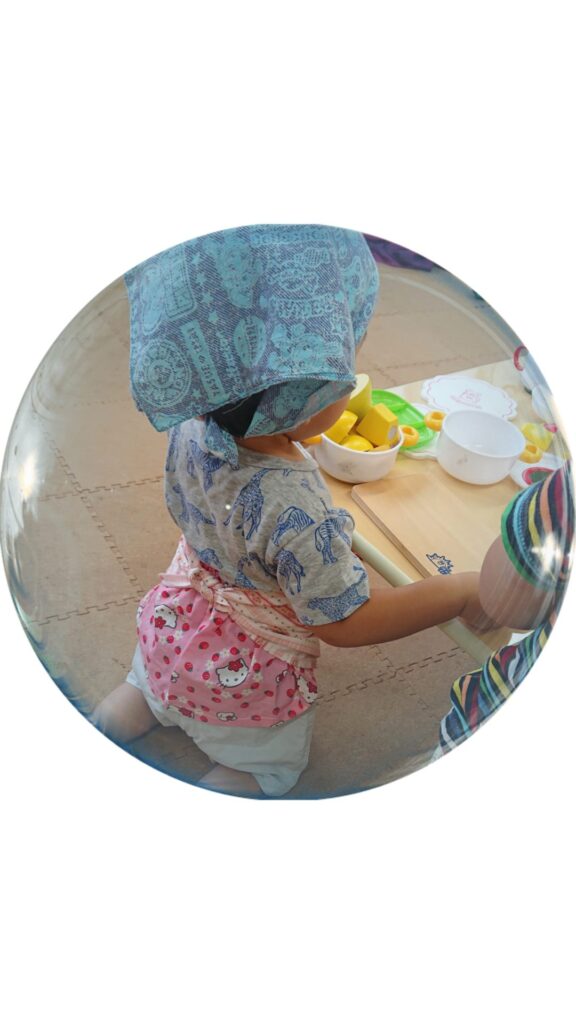 おかあさんになって料理をしたり、お人形のお世話をしたり。遊び方もだんだんとリアルになってきました✨
