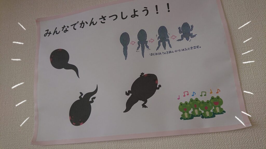 子どもたちも『せんせ!みて!みて!』『かえる!いるよ!』と小さなカエルを指さしながら嬉しそうに教えてくれました♬