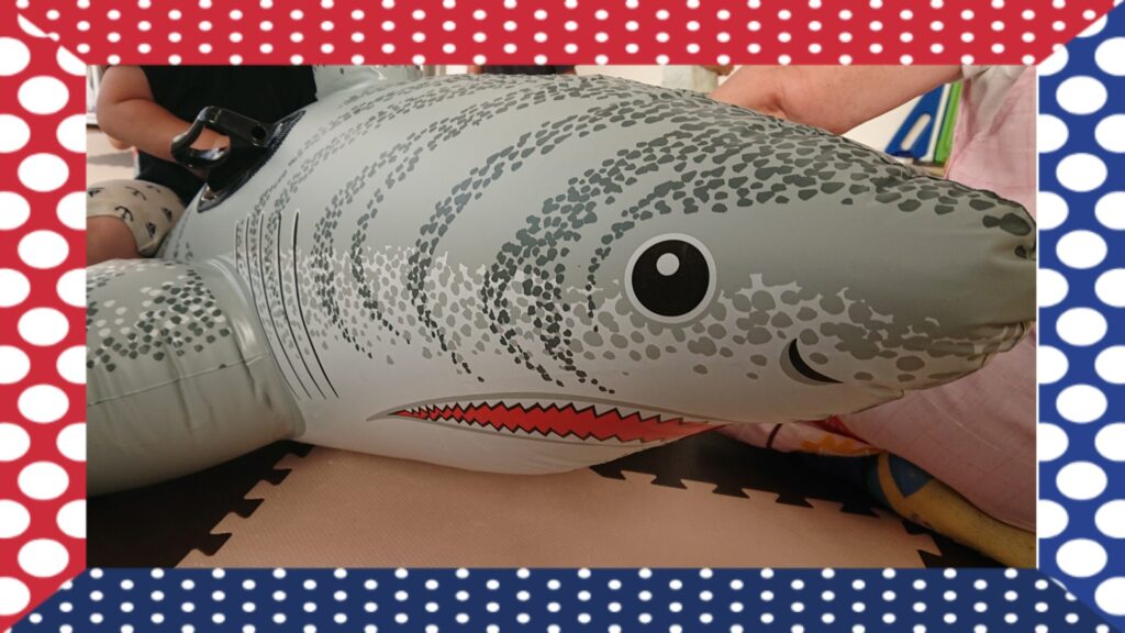 サメが遊びに来たり、うきわでプカプカしたり、お部屋でも夏らしいあそびを楽しんでいますよ????!