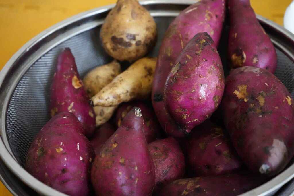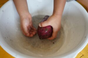 食材に触れうことを目的に、土がついているサツマイモを洗いました!