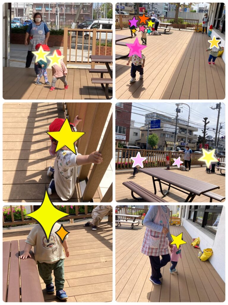 うみ組で、ベテルギウスのウッドデッキへお散歩に出かけました。