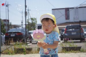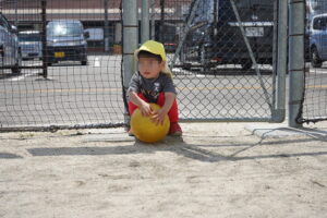シャボン玉やボール、丸いものを追いかけながら今日もたくさん遊んだね!!