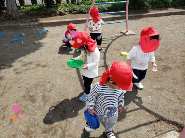 今日は公園で虫探しをしました。 草をかき分けると、たくさんのダンゴムシ発見‼️ アリの巣を見つけたり、お花のお豆を見つけ中を見てみたり… たくさんの発見をしたたいよう組さんでした❗