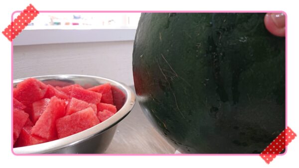 今日はおやつに“スイカ”を食べました! おいしくて ここまで食べちゃいました~????!