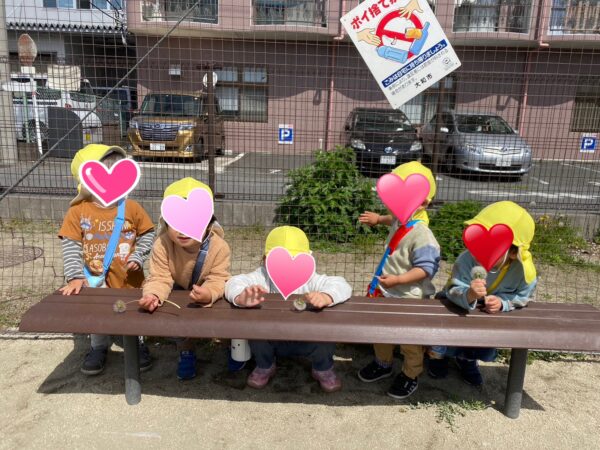 進級し、たいよう組にも慣れてきたお友だち! 今日はミニバス広場で、たんぽぽの綿毛を見つけました。 みんな一つずつ持って、嬉しそうに見せ合っていました♡