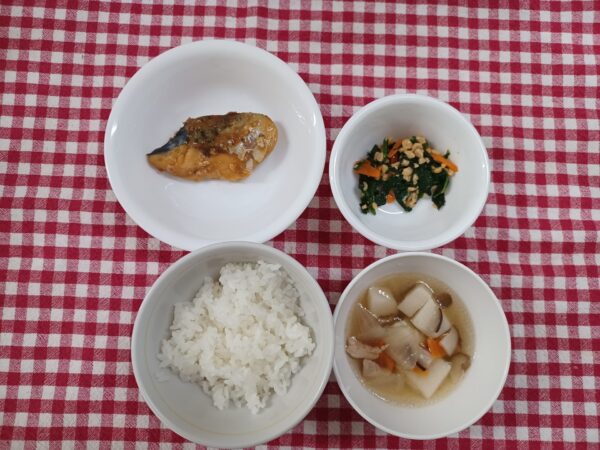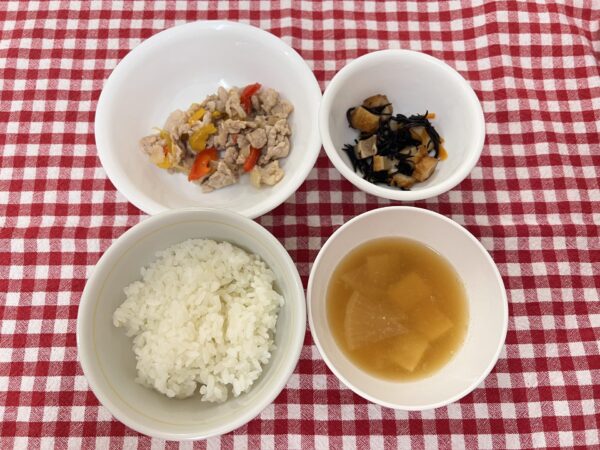 今日のお給食 ご飯 豆腐ナゲット 切り干し大根 スープ でした✨️