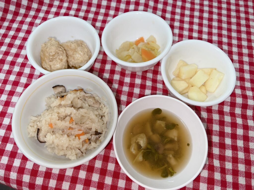 とり肉のつくね煮 2022年11月16日 最終更新日時 : 2022年11月16日 ななせ先生 今日のお給食は 炊き込みご飯 とり肉のつくね煮 白菜の煮浸し りんご でした✨ 今日もみんな良く食べてくれました✨