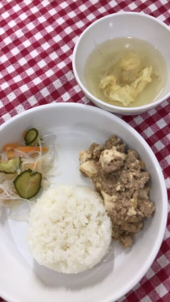 サワラの揚げ煮といっても、甘めの醤油出汁に荒粗めの大根おろしを煮たものにシャブっとつけて食べます。大根も食べやすく、ご飯に乗せても美味しいので 小さな子たちには人気です。そして、酢の物も意外に人気です。今日もよく食べてくれました。ありがとう????