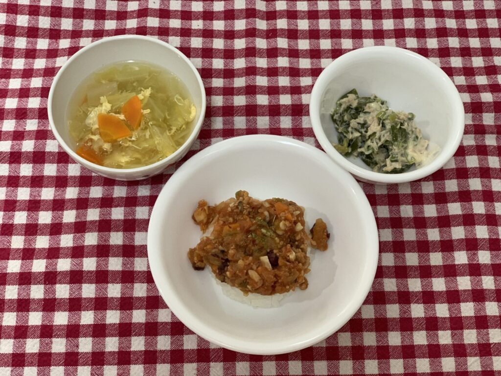 チリコンカンとはアメリカ合衆国の国民食と言われています☺️※保育園では、豆が喉に詰まったりしないように、細かく刻んで出しています