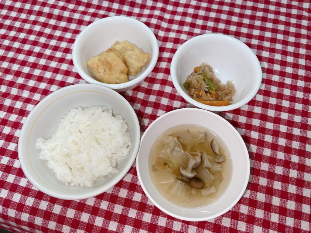 今日のお給食は 豆腐ナゲット 切り干し大根煮 和風スープ ご飯 でした✨