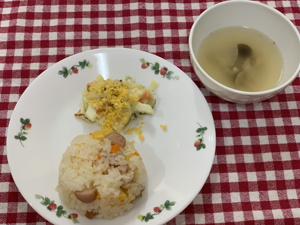 ピラフに入っているコーンを器用に避けて食べたり、スープに入っているキノコを器用に避けて食べたり…みんな手先が器用だな〜って見てました????