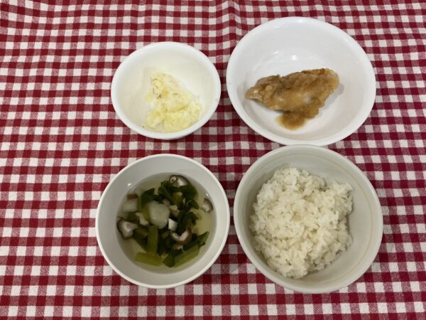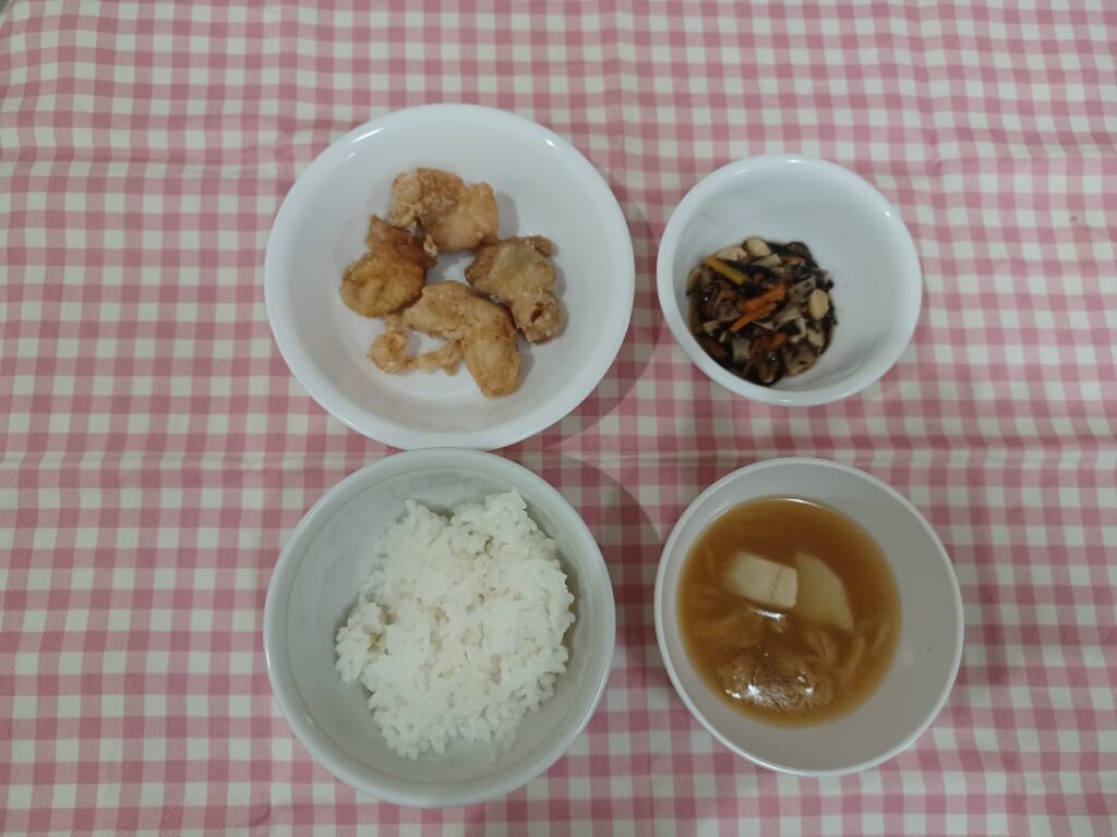 今日のお給食 ご飯 唐揚げ ひじきの炒め煮 みそ汁 でした!