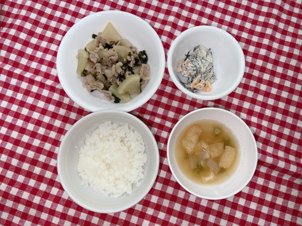大根と豚肉の煮物 2022年7月26日 最終更新日時 : 2022年7月26日 ななせ先生 今日のお給食は 大根と豚肉の煮物 ひじきサラダ お味噌汁 ご飯 でした✨️ 今日もモリモリ食べてくれました✨️