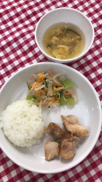 昨日は、クリスマス会????サンタさんも登場して、子どもたちは少々緊張気味でした????メニューは、チキンの照り焼きと人参グラッセ、ブロッコリーのサラダ????そしてグラムハウスのコッペパンをお腹いっぱい食べました♪????
