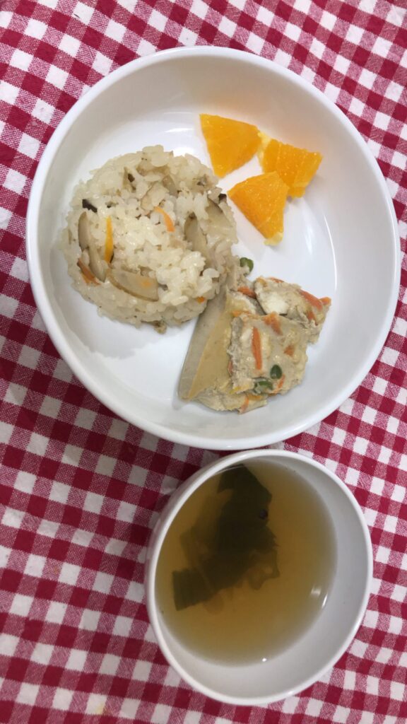 炊き込みご飯とぎせい豆腐 2020年11月6日 最終更新日時 : 2020年11月6日 ななせ先生 ぎせい豆腐は、豆腐を崩して茶碗蒸しの様に作ったものですが、柔らかいので食べやすいです。 また、すまし汁にオクラを入れましたが、"お星様が入っている❗️"と大喜びでした。????