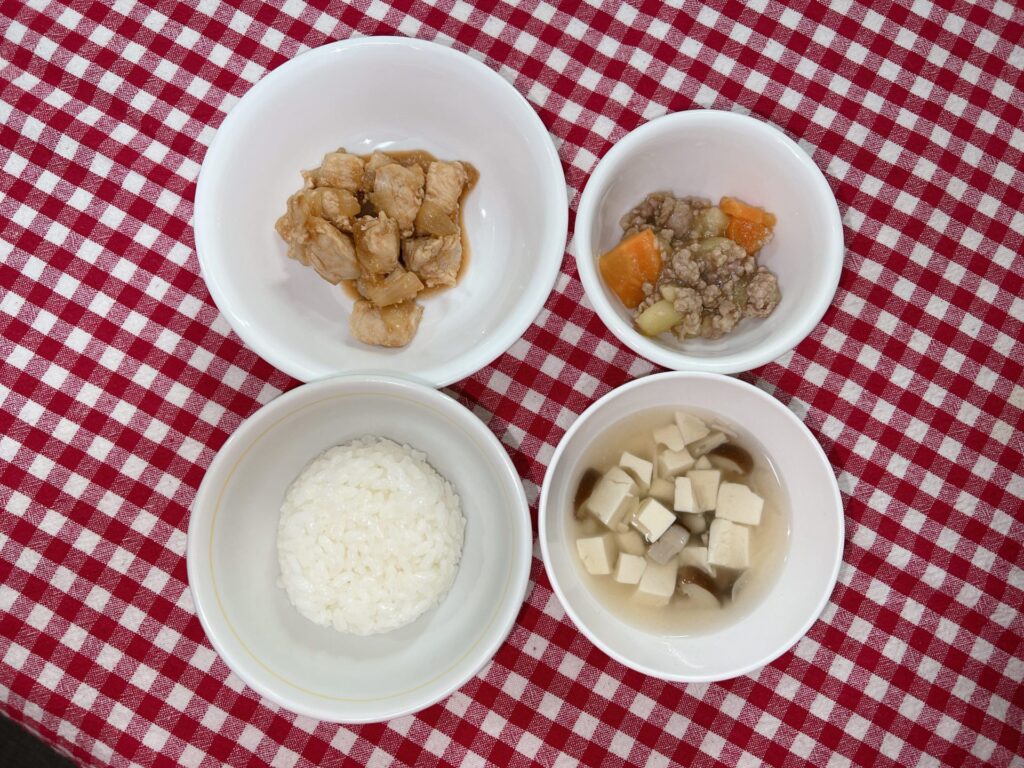 甘辛ジューシーチキン 2022年6月29日 最終更新日時 : 2022年6月29日 ななせ先生 今日のお給食は 甘辛ジューシーチキン そぼろ煮 とろみスープ ご飯 でした✨ 今日ももりもり食べてくれました✨