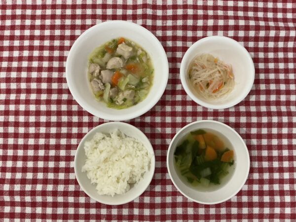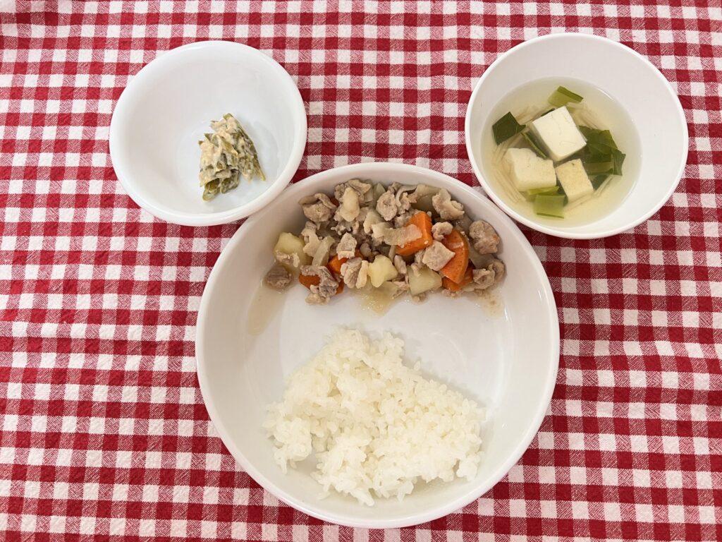 今日のお給食は 肉じゃが マヨ和え すまし汁 ご飯 でした✨