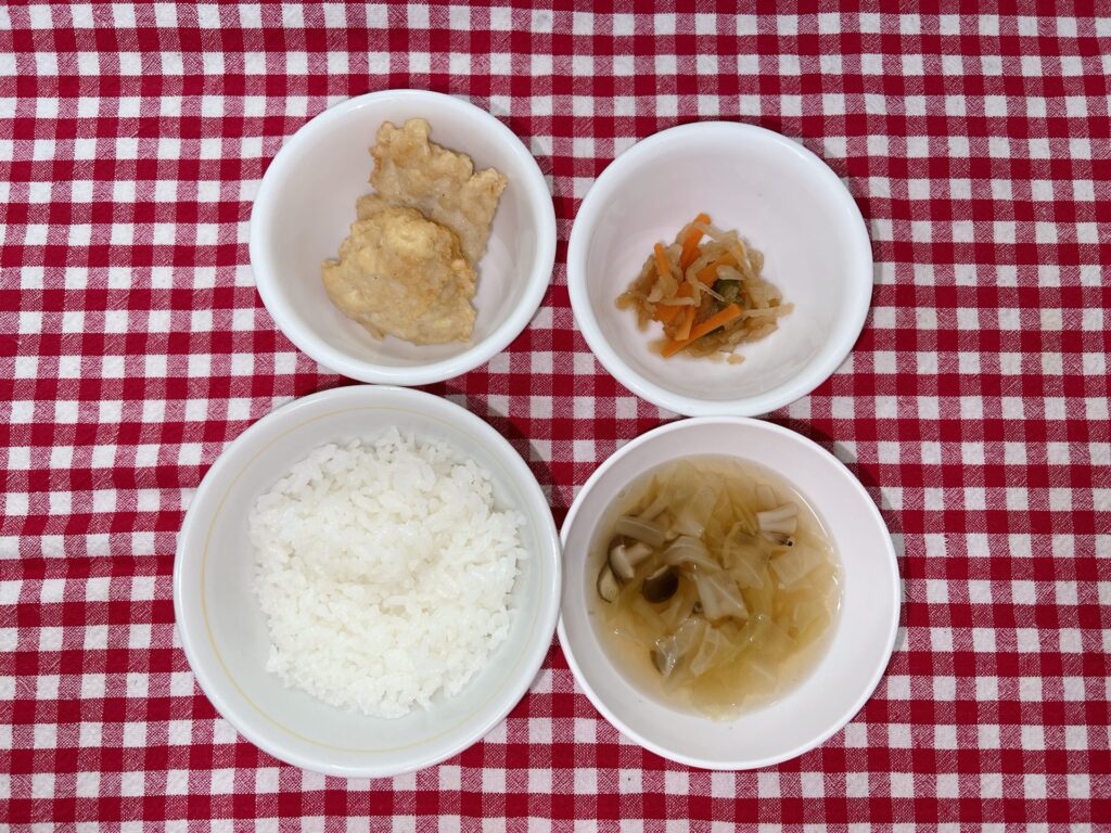 豆腐ナゲット 2022年10月26日 最終更新日時 : 2022年10月26日 ななせ先生 今日のお給食は 豆腐ナゲット 切り干し大根煮 和風スープ ご飯 でした✨️ 今日は全体的によく食べてくれました。中でもスープは大人気でした♡