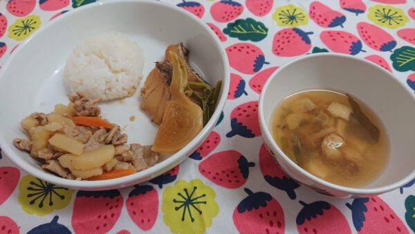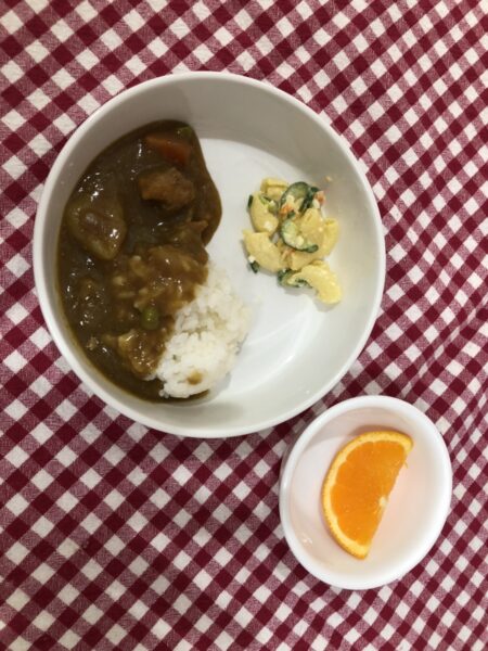 今日はお天気も良く、お散歩に出かけて新しいうみ、そら組さんで給食食べるのは3人だけ。ちゃんと座って黙々と食べているのには感心しました。新しいたいよう組さんは流石です。ちょっといたずらも覚えて先生に注意されながらも、しっかりおかわりしてお野菜も頑張って食べていました。????