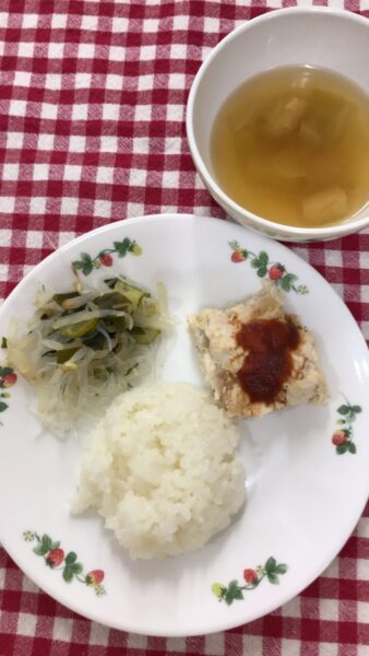今日も蒸し暑い一日でした????でも、みんな夏の楽しみ、プールで遊んでご飯沢山食べてくれました。苦手なインゲンも、隣のお友達が食べると自分も頑張って食べていて偉いな〜って感心しました。????しっかり食べて、夏を乗り切ろう〜❣️????