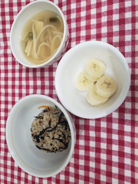 今日はすっかり秋模様の天気。雨が降るので室内で遊んでいたお友だち。真夏の暑さ負けからは脱出したようで、食欲は戻りつつあります。????唐揚げはもちろん、具沢山の野菜スープもマカロニ、これはリンゴのスライス入りで、おかわりいっぱいしてくれました。????