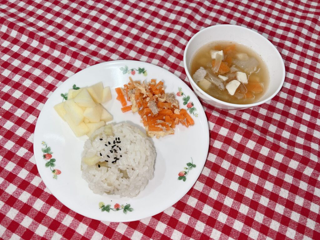 さつまいもご飯 しりしり りんご 汁