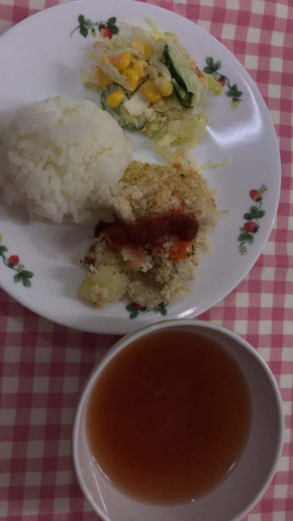スコップコロッケとキャベツとコーンのサラダ 2021年6月16日 最終更新日時 : 2021年6月16日 ななせ先生 今日のスコップコロッケとは、コロッケの具を天板に敷き詰めてパン粉を振りかけ、揚げずに焼きます。離乳食のお子さんでも食べれます。お試し下さいね♪????