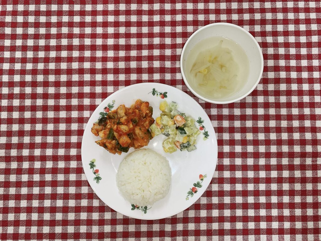 トマトチーズ焼き サラダ スープ ご飯 2021年12月14日 最終更新日時 : 2021年12月14日 ななせ先生 今日のお給食は 鶏肉のトマトチーズ焼き さつまいものサラダ スープ ご飯 でしたᙏ̤̫͚♡