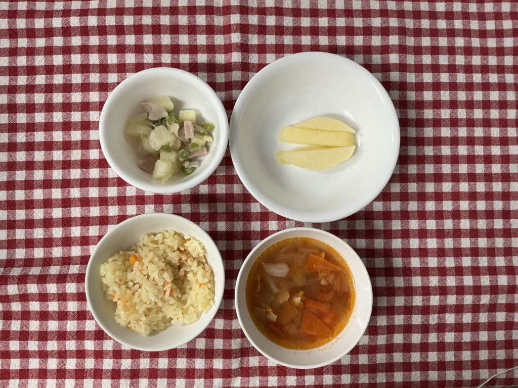 ピラフ 2025年10月27日 最終更新日時 : 2025年10月27日 ななせ先生 ピラフ・トマトスープよく食べていました☺️午後のおやつの「にんじんクッキー」も、サクサクと音を楽しみながら食べていましたよ🥕