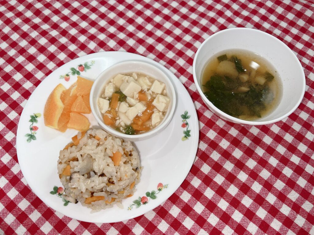 炊き込みご飯 2022年5月24日 最終更新日時 : 2022年5月24日 ななせ先生 今日のお給食は 炊き込みご飯 豆腐のとろみ煮 オレンジ ご飯 お味噌汁 でした! 2歳児さんはオレンジの皮を剥くのに挑戦✨ みんな上手にできていましたᙏ̤̫͚♡