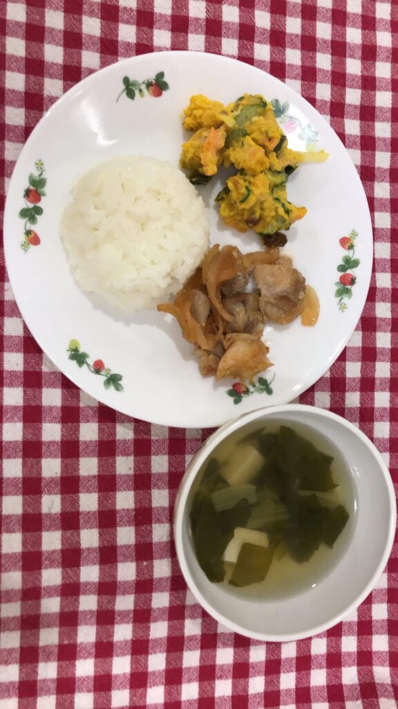 今日は祭日明けと秋の花粉か体調不良か、鼻垂れさんが多く ご機嫌良くないお友達が多かったです。????でも、ご飯はいっぱい食べてくれて、チキンは人気ありました♪が、カボチャサラダは苦手さん多かったです。残念????