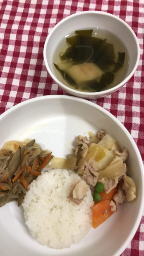 肉じゃがとゴボウきんぴら 2021年1月23日 最終更新日時 : 2021年1月23日 ななせ先生 肉じゃが、今日もよく食べました。ゴボウきんぴらは、独特の歯応えと味が明暗分けます。「美味しい〜❣️」の声に今日も励まされた一日でした。????