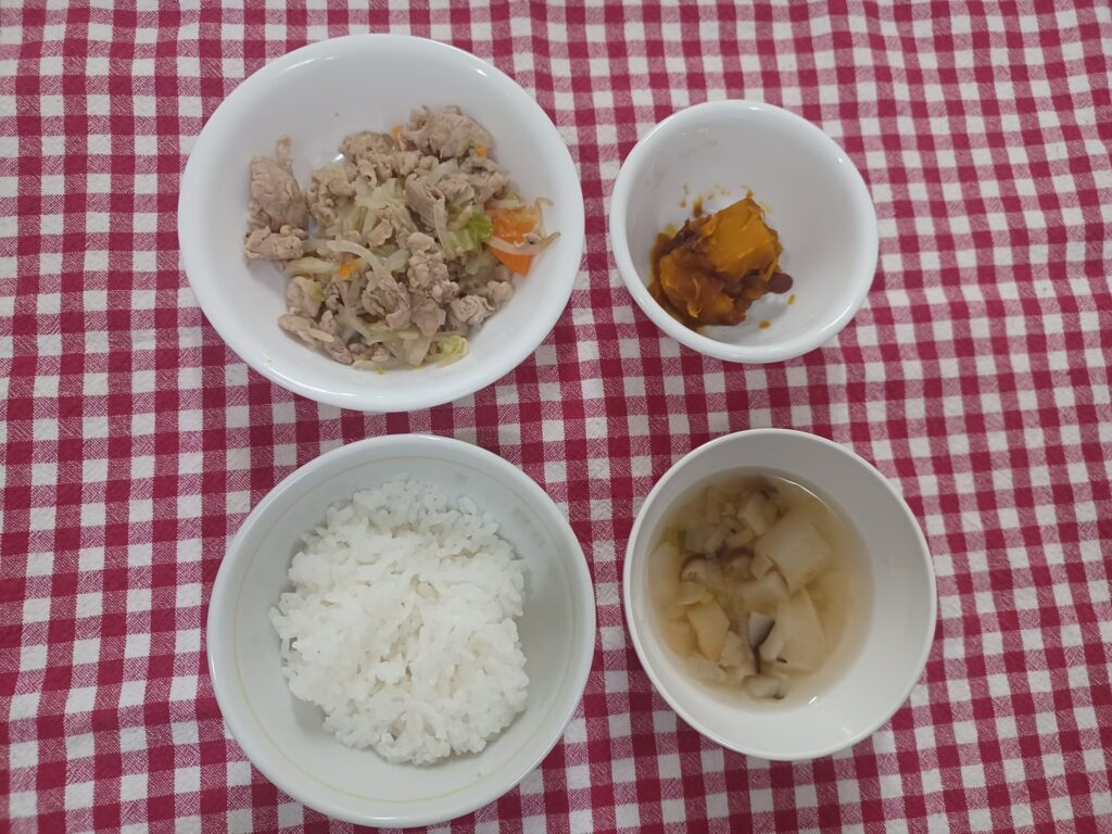 肉野菜炒め 2024年12月3日 最終更新日時 : 2024年12月3日 ななせ先生 今日のお給食 ご飯 肉野菜炒め かぼちゃのいとこ煮 すまし汁 みんなの大好きなかぼちゃのいとこ煮???? たくさん食べました????