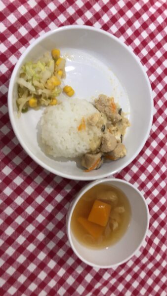 お魚料理はいつも良く食べてくれますが、今日の鮭は、味噌マヨのソースが口にあったらしく、おかわりもすっかり無くなりました。