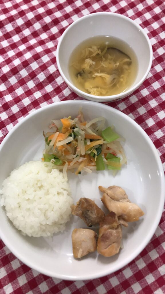 お正月あけて、子どもたち コロナにも寒さにも負けず元気です。食べると言うことは、生きていく力だと つくづく思います。白飯だけだと食べない子も、鶏肉乗せてタレのついたご飯喜んで食べてくれます。ナムルもしっかりおかわりして、作った方も嬉しく励まされます。今日も元気なななせの子たちでした。????