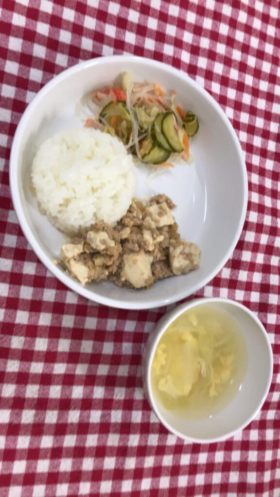 ほとんど残さず、おかわり分もほぼ完食。白ごはんが好きな子もいるので、2歳児は別々によそるのですが、"ご飯にかけて食べても美味しいよ♪"の掛け声に、何故か春雨サラダを乗せてしまった子もいたり????それでも良く食べてくれました❣️