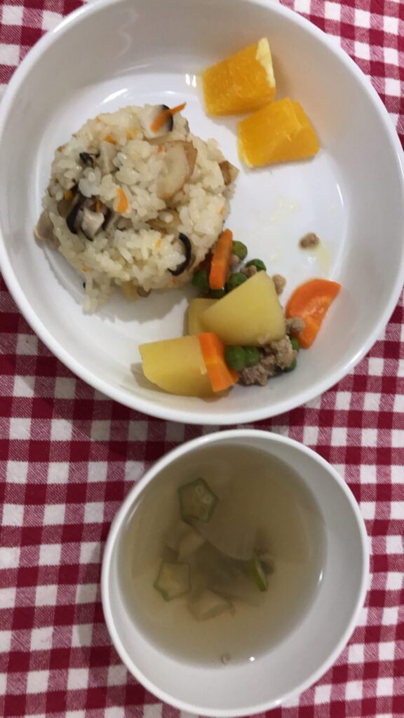 8/21の給食 炊き込みご飯 2020年8月23日 最終更新日時 : 2020年8月23日 ななせ先生 すまし汁にオクラを入れました。 「昨夜、お空のお星様を取ってきて、スープに入れました。」と最初に話をしたら、みんなオクラもちゃんと食べてくれました。