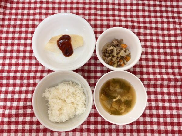 今日のお給食は アジの蒲焼 いんげんのごま和え お味噌汁 ご飯 でした✨️