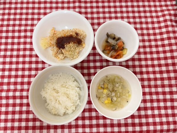 今日のお給食は スコップコロッケ ラタトゥイユ スープ ご飯 でした✨