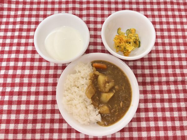 今日のお給食は ツナカレーライス かぼちゃサラダ ヨーグルト でした✨️