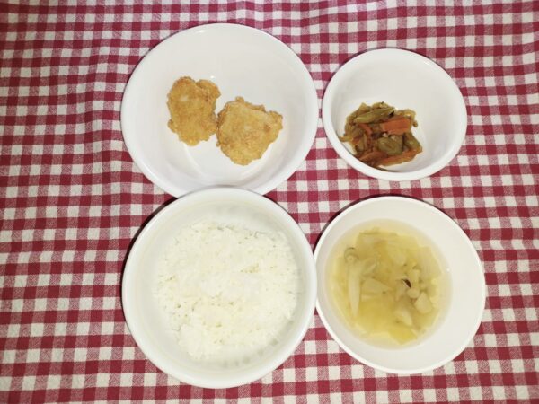 今日のお給食は 豆腐ナゲット 切り干し大根煮 和風スープ ご飯 でした✨