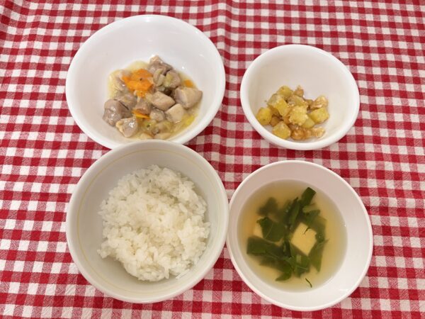 今日のお給食は 豆腐ナゲット 切り干し大根煮 お味噌汁 ご飯 でした✨️