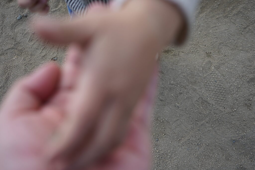 小さな手はギュッと握りしめられていて“あれ?なにか見つけたのかな?”と思って見ていると…