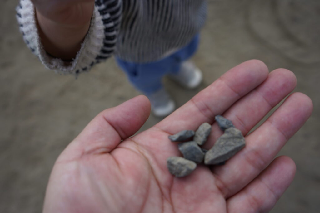 小さな握りこぶしが開くと、コロコロと私の手に転がり落ちてきたのは、一生懸命に拾い集めた小さな小さな石でした😊